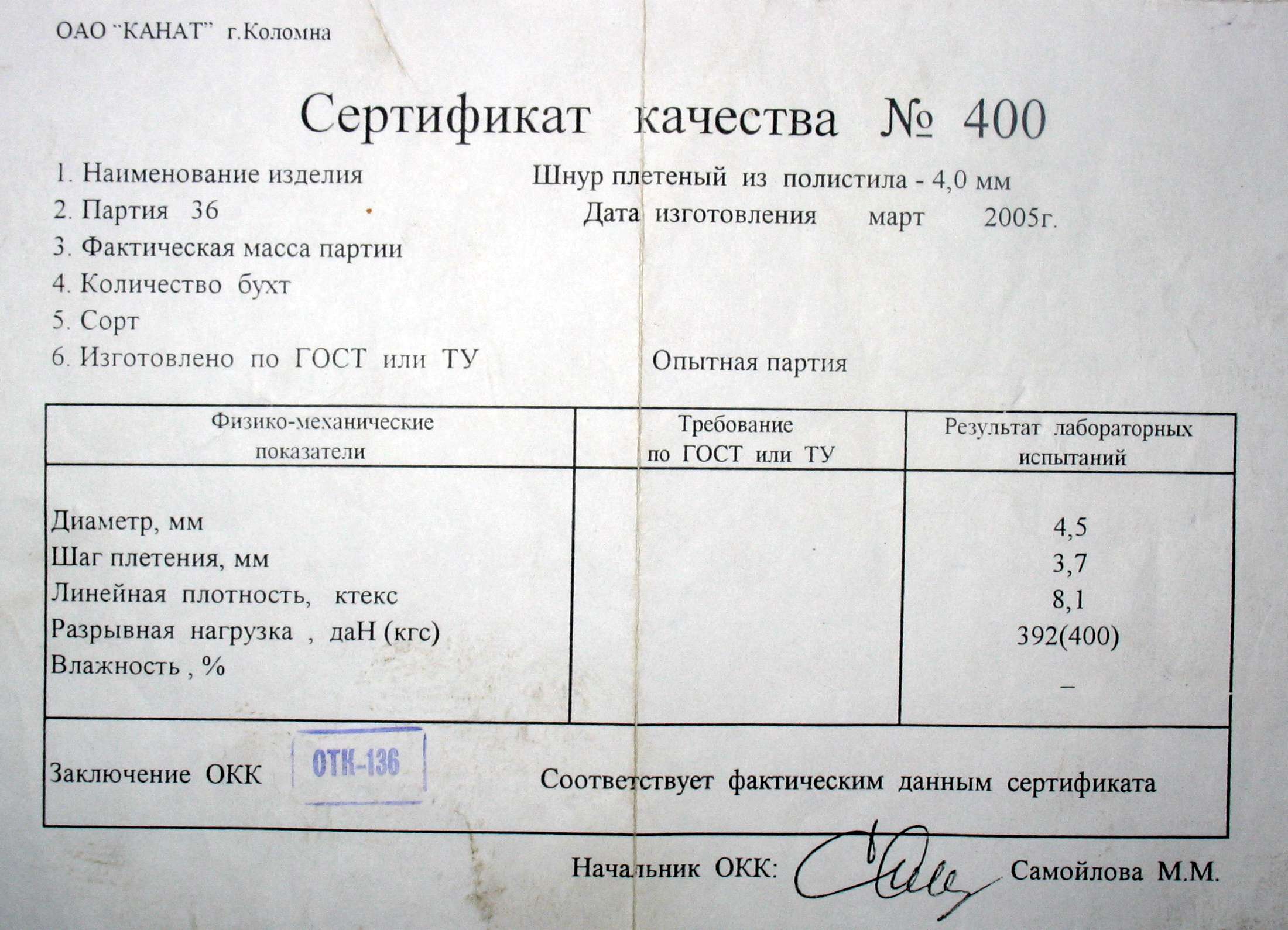 Трос сертифицирован